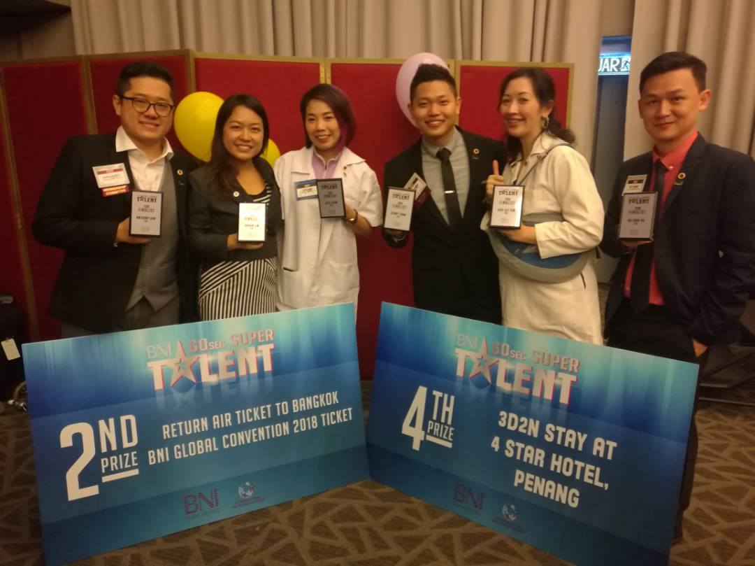 To encourage this, as part of the annual conference, BNI decided to have its inaugural BNI 60-second competition. Basically, it was a public speaking competition where we have to talk about our business in 60 seconds. Obviously, we have to be really interesting and captivating within 60 seconds. Costumes and props were allowed, as well as any background actors or prop holders, but the full speech has to be given by the business member.